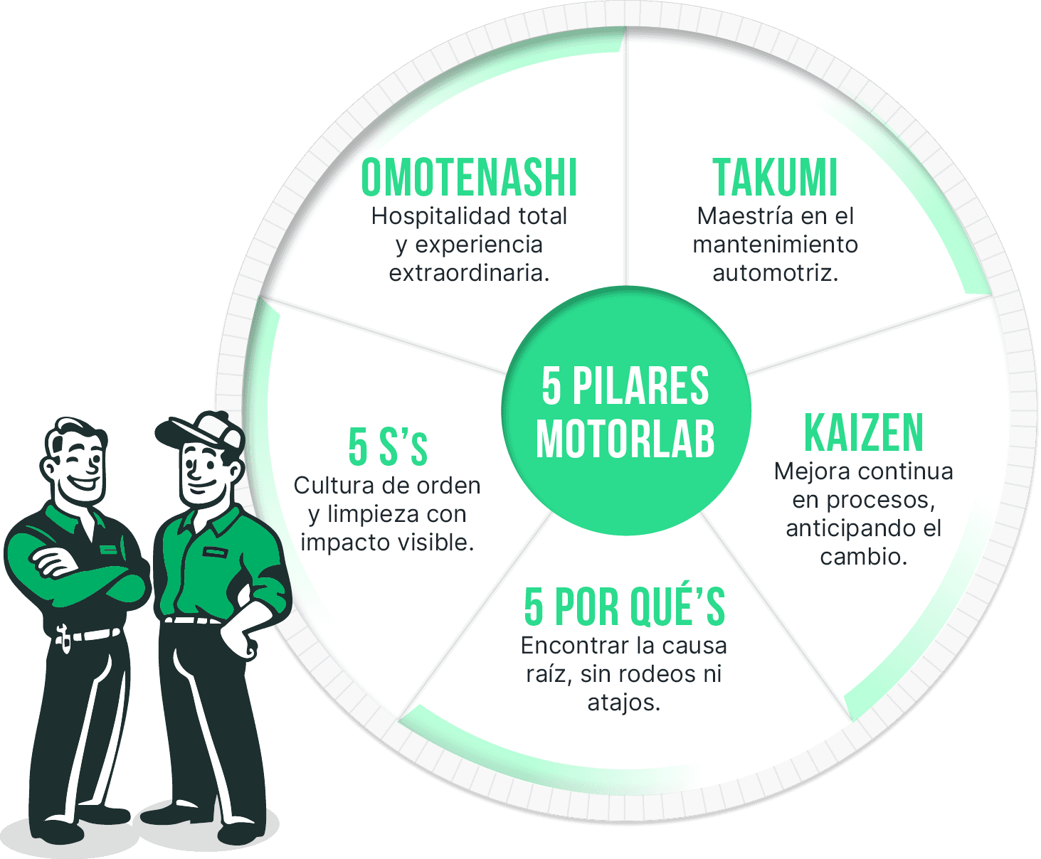 Compartimos el rigor y la filosofía de las culturas asiáticas, de ahí nace nuestra pasión por los 5 Pilares que hoy definen a MotorLab.